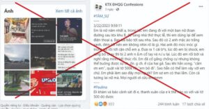 Ngoài ra, tiến hành kiểm tra trên trang Fanpage “KTX ĐHQG Confessions” về thông tin bài viết trên, đến thời điểm hiện tại bài viết trên đã bị xóa, không còn đăng tải trên trang.