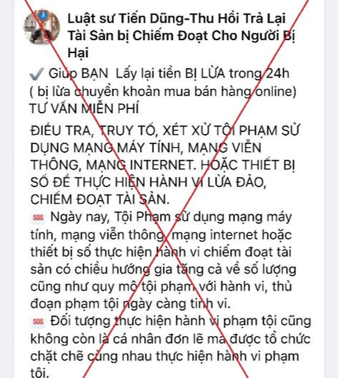 Cục An toàn thông tin (Bộ Thông tin và Truyền thông) khuyến cáo người dân tuyệt đối không tin vào hình thức “hỗ trợ lấy lại tiền bị lừa đảo” trên mạng xã hội. Không tin tưởng dịch vụ yêu cầu thanh toán trước các khoản phí.