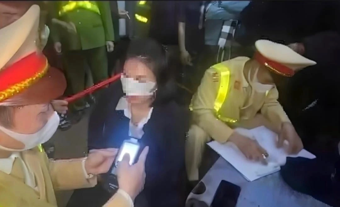 Nắm thông tin, Đội CSGT số 6 (thuộc Phòng CSGT, Công an TP.Hà Nội) đã có mặt để giải quyết. Qua kiểm tra, chị T. vi phạm nồng độ cồn ở mức 0,573 mg/l khí thở.