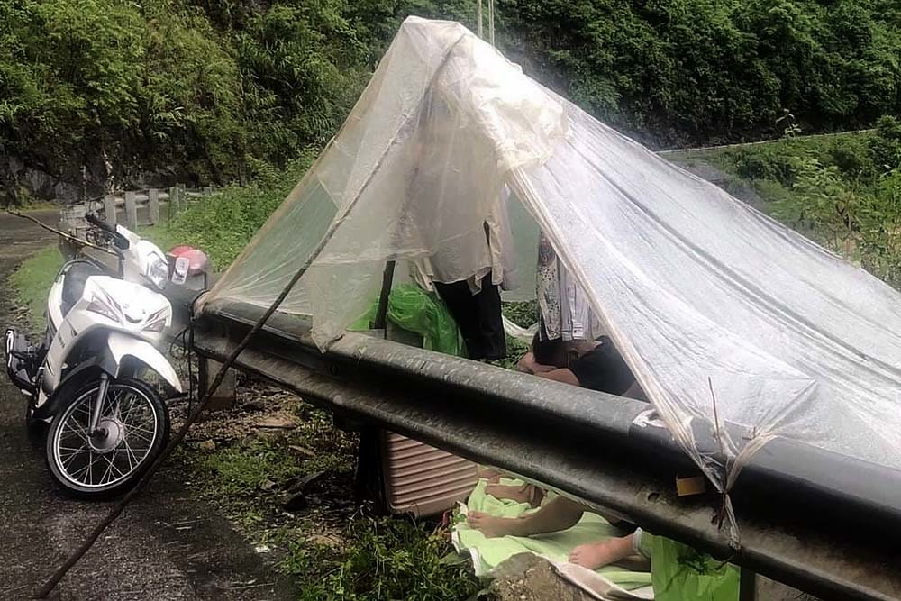 Hình ảnh 4 người dân huyện Than Uyên, tỉnh Lai Châu mắc lán ngủ gần khu vực chốt kiểm soát dịch Covid-19 trong lúc chờ cơ quan chức năng xác minh yếu tố dịch tễ thu hút sự quan tâm của dư luận.