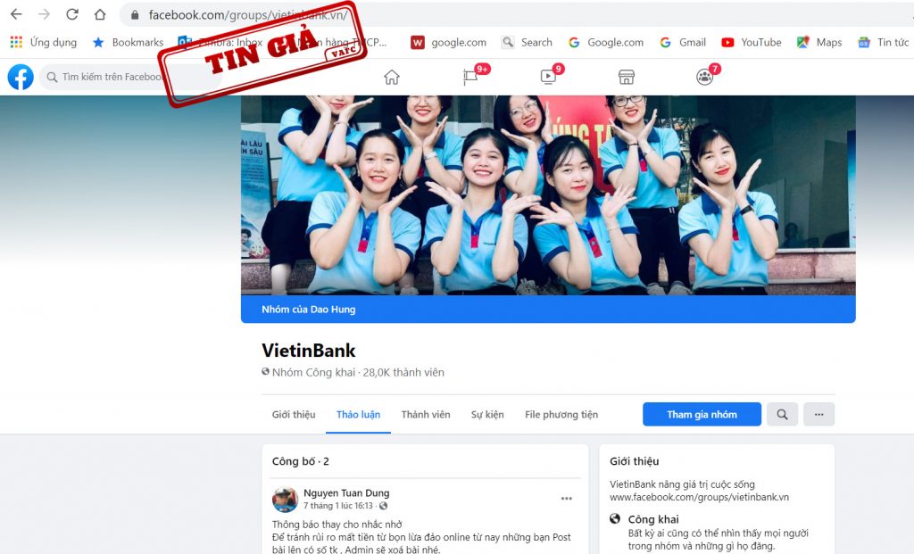 Trung tâm Xử lý tin giả Việt Nam (VAFC) đã xác minh và kết luận nhóm facebook có tên gọi VietinBank tại địa chỉ https://www.facebook.com/groups/vietinbank.vn đã giả mạo tên, hình ảnh VietinBank, dễ gây nhầm lẫn cho cộng đồng. Trung tâm Xử lý Tin giả Việt Nam khuyến cáo cộng đồng mạng không chia sẻ thông tin, sử dụng dịch vụ của nhóm Facebook giả mạo này và sẽ chuyển vụ việc tới cho cơ quan chức năng để xem xét, xử lý theo quy định hiện hành.