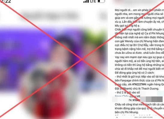 Thông tin kêu gọi ủng hộ Phi Nhung là giả mạo