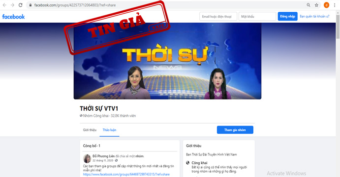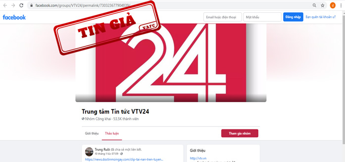 Căn cứ công văn phản ánh tin giả của VTV, Trung tâm Xử lý Tin giả Việt Nam (VAFC) xác nhận, một số tài khoản sau là giả mạo các đơn vị thuộc VTV, gồm: Kênh VTV1, Kênh VTV3, Trung tâm Tin tức VTV24.